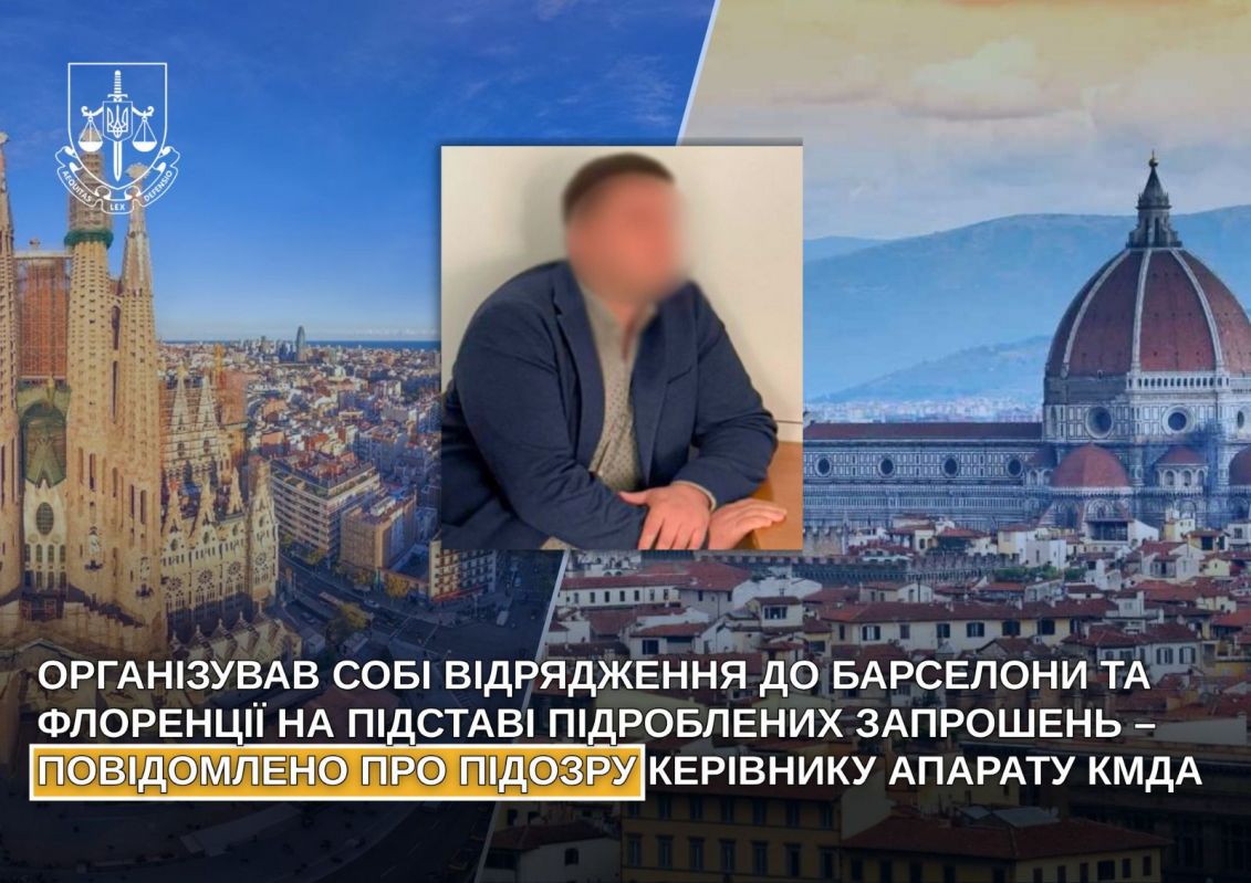 Under the procedural guidance of the Kyiv City Prosecutor's Office, the head of the executive body of the Kyiv City Council (KCSA) has been notified of suspicion for using forged documents to organize private trips abroad under the guise of business trips.