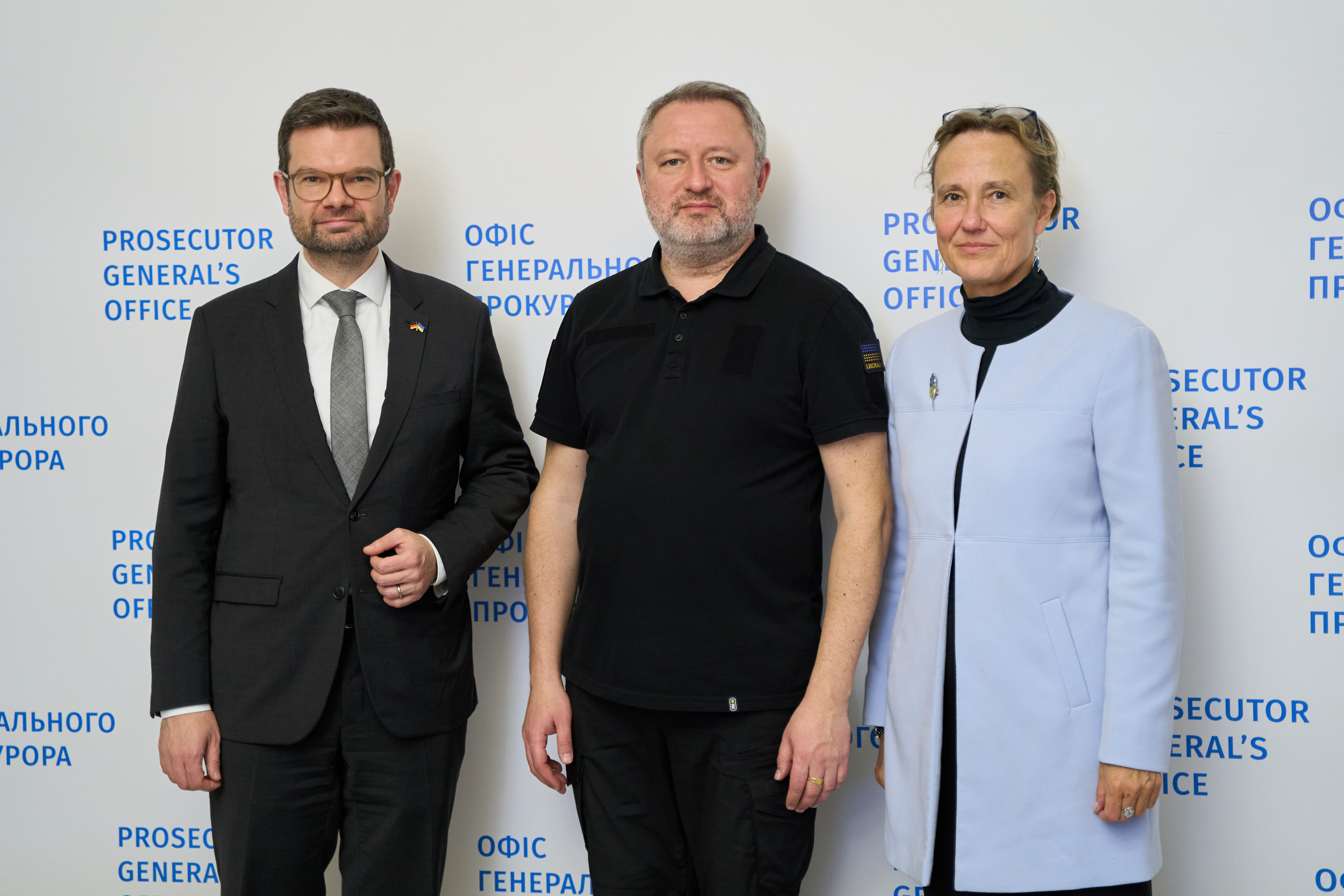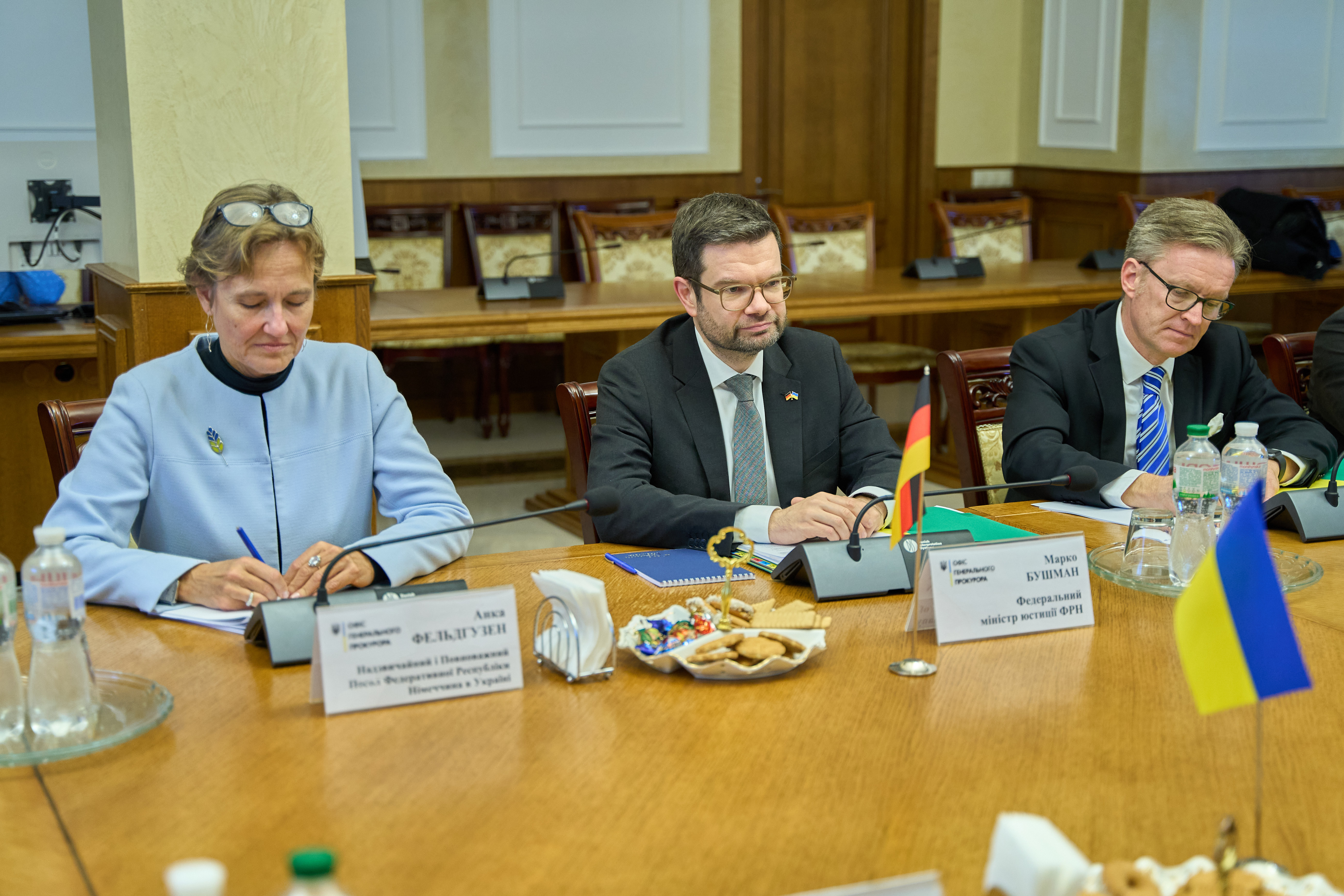 Генеральний прокурор Андрій Костін в ході зустрічі з Федеральним міністром юстиції ФРН Марко Бушманом подякував німецькими партнерам за підтримку та спільну роботу заради забезпечення невідворотності покарання російських воєнних злочинців і пособників агресії.