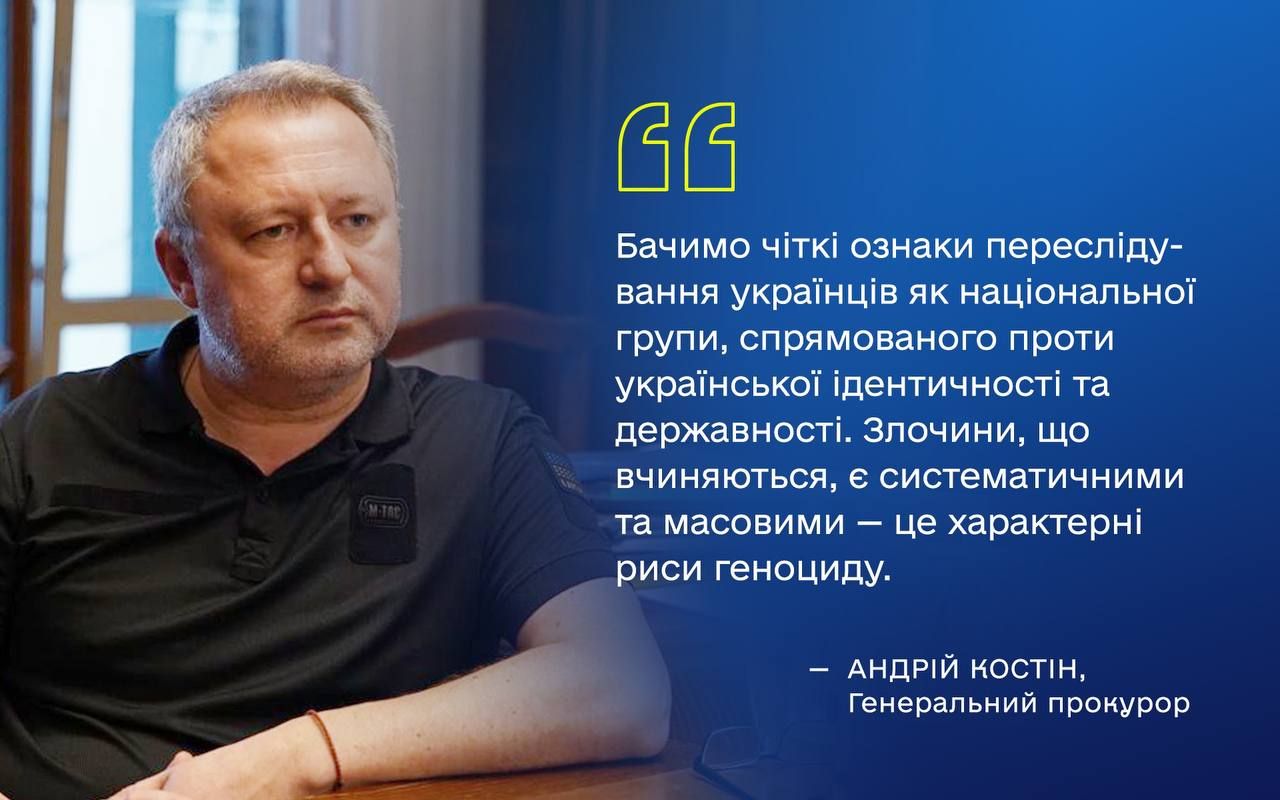 Що відрізняє такі дії від інших міжнародних злочинів, вчинених в Україні чи за її межами, так це те, що вони чітко демонструють ознаки кампанії переслідування українців як національної групи. Політики, спрямованої проти української ідентичності та української державності. Крім того, вчинені злочини є систематичними та поширеними, що є особливостями геноциду.