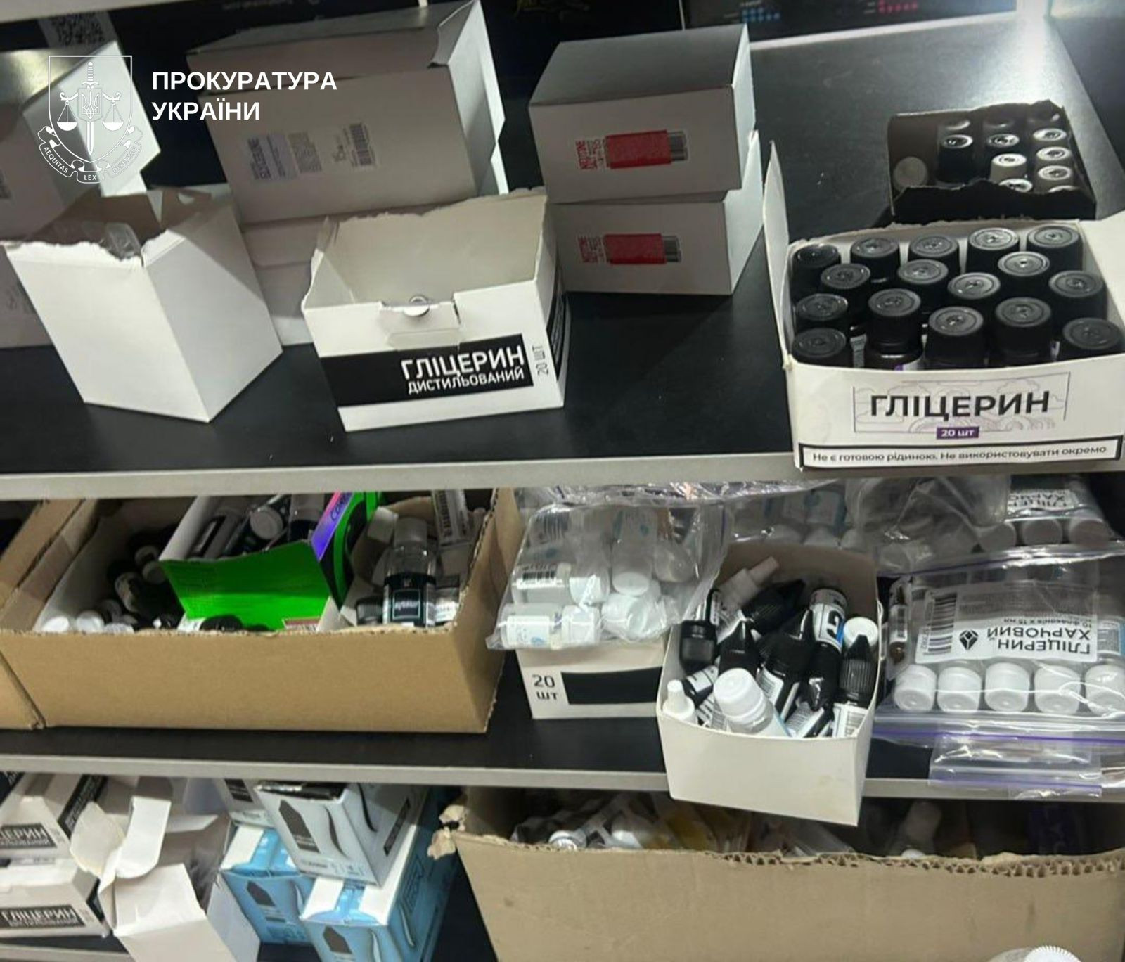 Прокурори Київської обласної прокуратури здійснюють процесуальне керівництво у кримінальному провадженні за фактом нелегального обігу тютюнових виробів, електронних сигарет та рідин для куріння. Організатору незаконної діяльності повідомлено про підозру за ч. 1 ст. 204 КК України (незаконне зберігання, збут або транспортування з метою збуту підакцизних товарів).