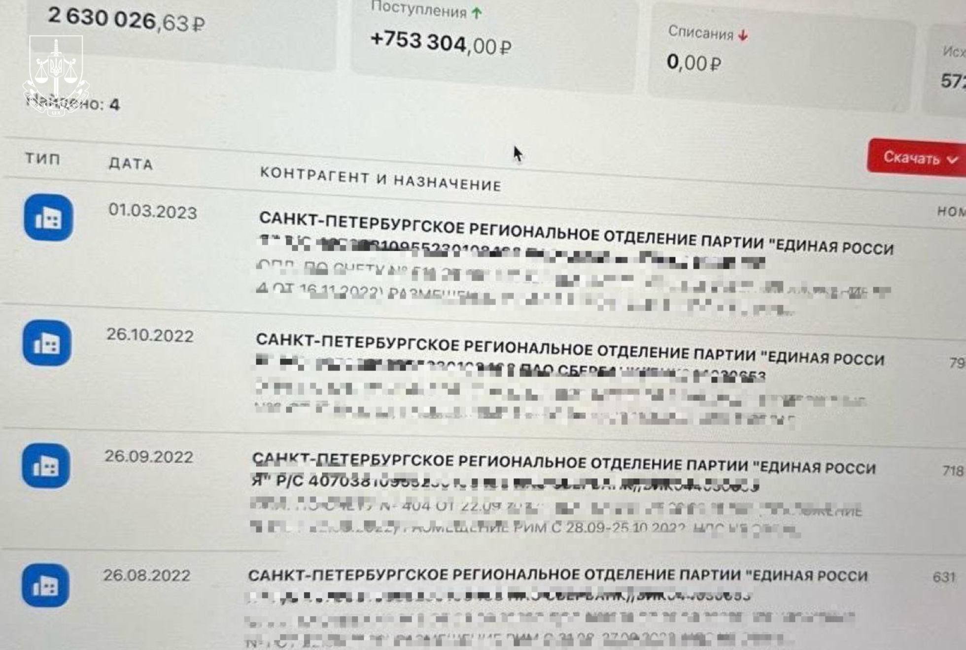 Під час співпраці з пропутінською партією підозрювана отримала прибуток – понад 35 млн російських рублів. Частина з цих коштів у вигляді дивідендів «осідала» на її банківських рахунках в російських фінустановах.