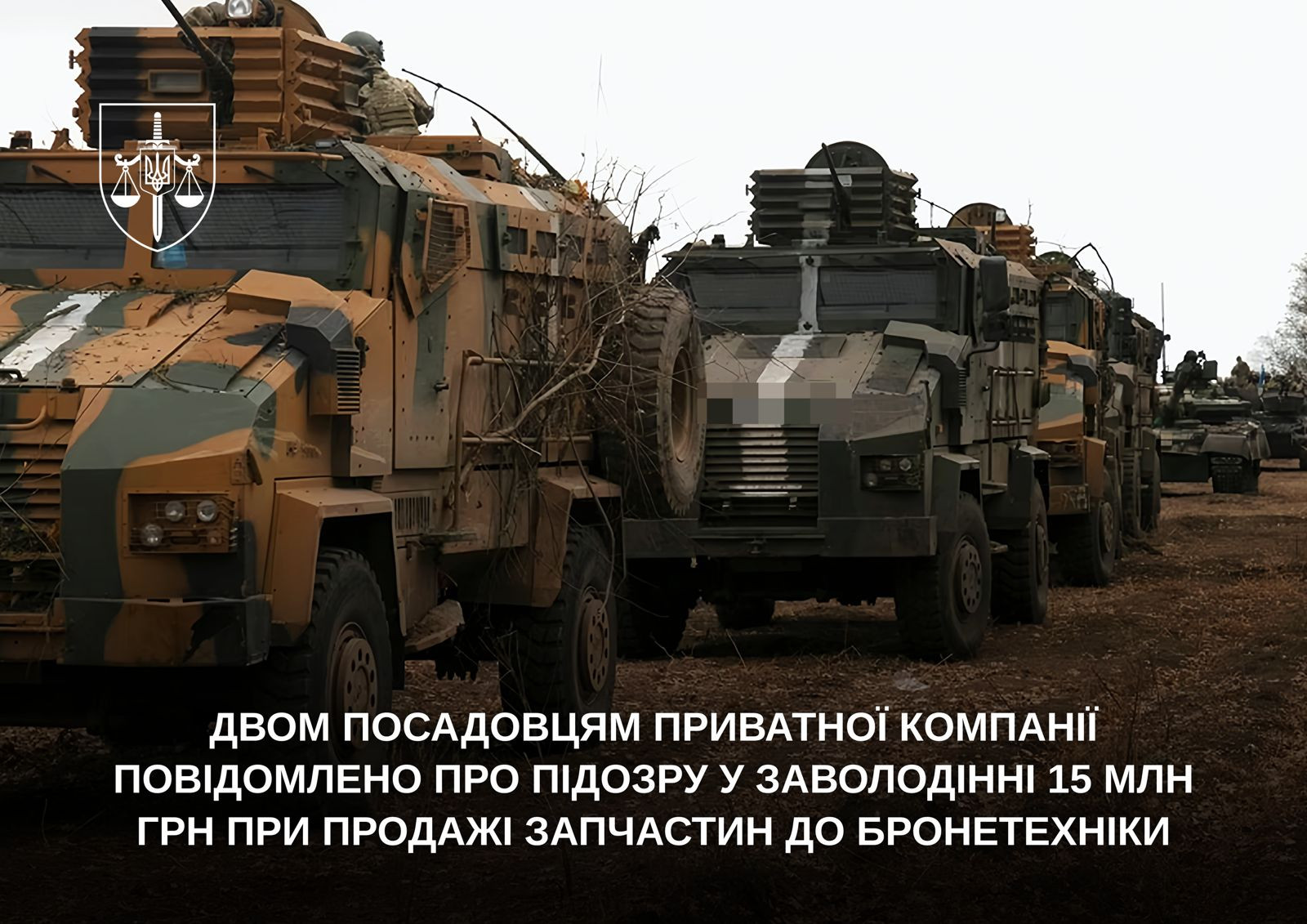 Двом посадовцям приватної компанії повідомлено про підозру у привласненні 15 млн грн при продажі запчастин до бронетехніки