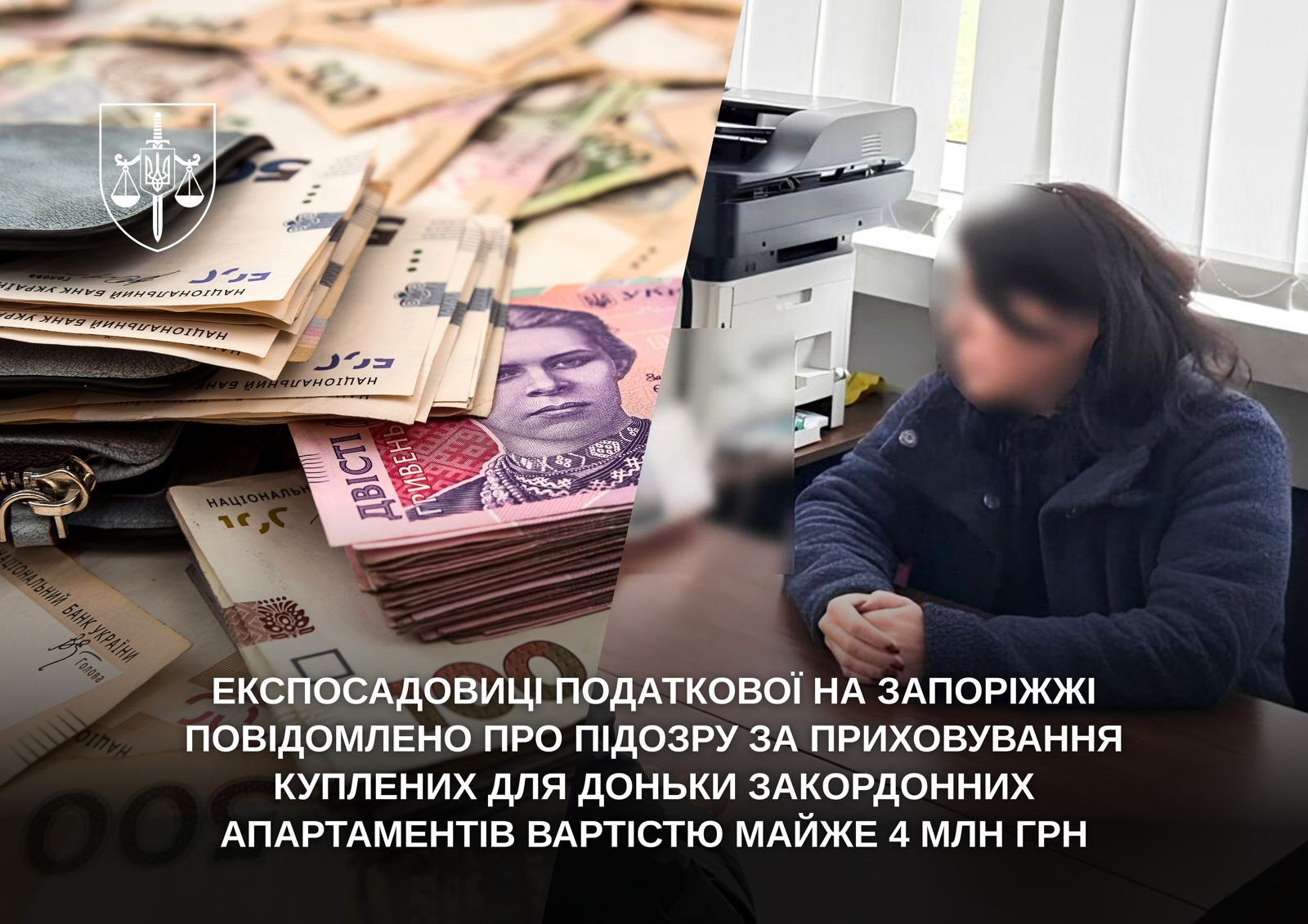 За процесуального керівництва прокурорів Запорізької обласної прокуратури 25 листопада 2025 повідомлено про підозру експосадовиці Головного управління Державної податкової служби у Запорізькій області в умисному внесенні недостовірних відомостей до декларації особи, уповноваженої на виконання функцій держави (ч. 1 ст. 366-2 КК України).