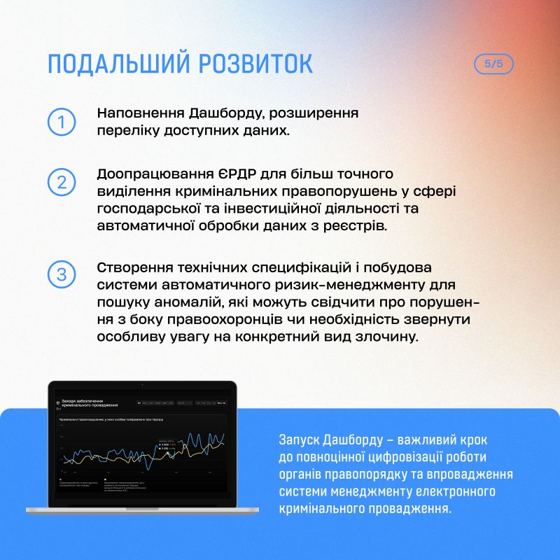 У бета-версії Дашборду послідовно викладена вибірка підтверджених правоохоронними органами злочинів за 2024 рік, які стосуються бізнесу, а також інформація про всі кримінальні правопорушення, які мали відношення до економічної сфери за останні 5 років.