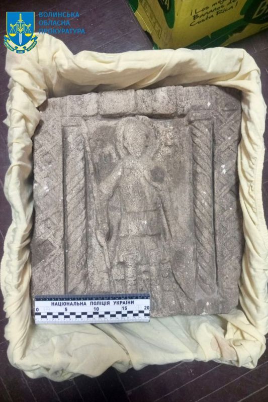 Завдяки злагодженій роботі правоохоронних органів у ході слідства вдалося віднайти унікальну пам'ятку – вирізьблену кам’яну плиту Х-ХІІІ ст. із зображенням «Святого воїна» періоду Київської Русі.