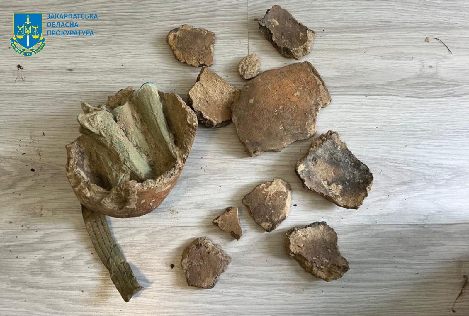 Артефакти вилучили у мешканця обласного центру в межах кримінального провадження, яке здійснюється за процесуального керівництва Ужгородської окружної прокуратури, за фактом незаконного привласнення особою знайденого чи такого, що випадково опинилося у неї, чужого майна або скарбу (ч. 1 ст. 193 КК України).