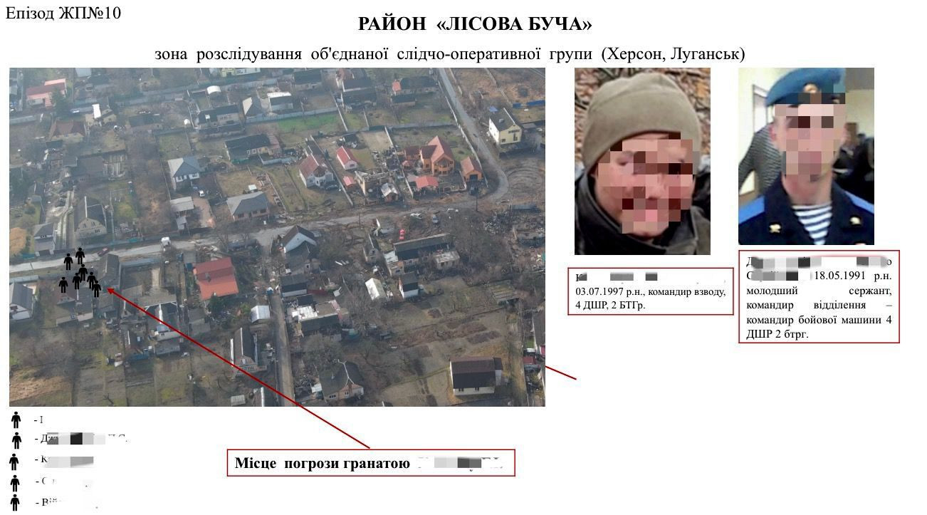 За даними слідства, 7 березня 2022 року під час окупації Київщини військовослужбовці 234-го десантно-штурмового полку 76-ї дивізії Повітряно-десантних військ зс рф під командуванням лейтенанта встановили контроль над районом «Лісова Буча».