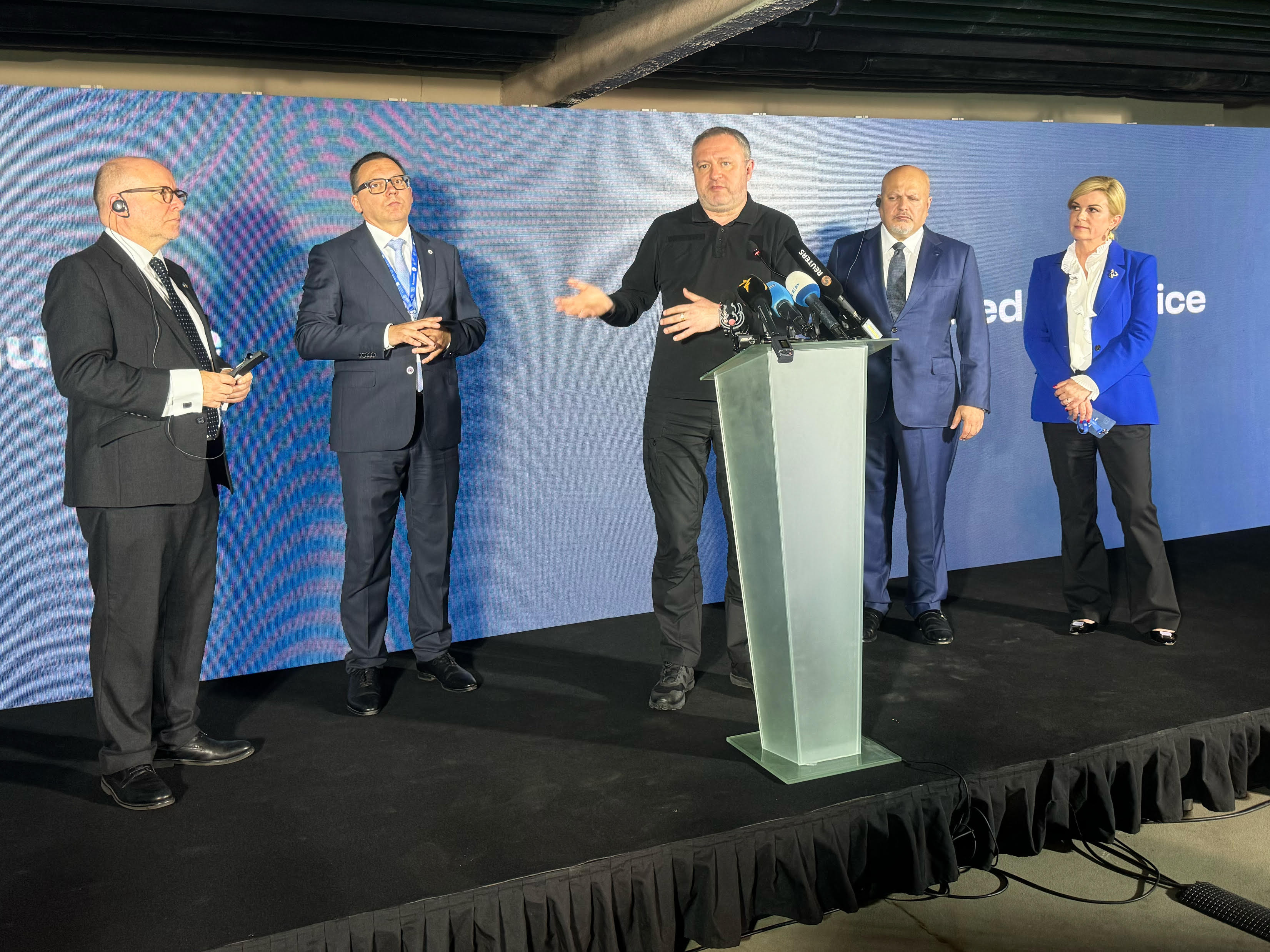 Діалог з представниками медіа на полях конференції відбувся за участі Прокурора МКС Каріма Хана, Голови Євроюсту Ладіслава Хамрана, Генерального прокурора Великої Британії Річарда Хермера та колишньої Президентки Хорватії Колінди Грабар-Китарович.
