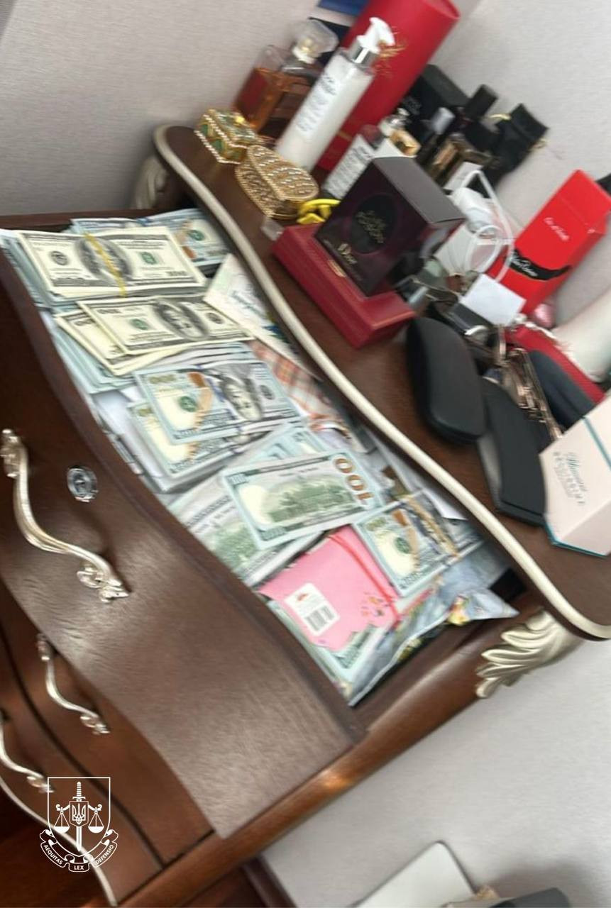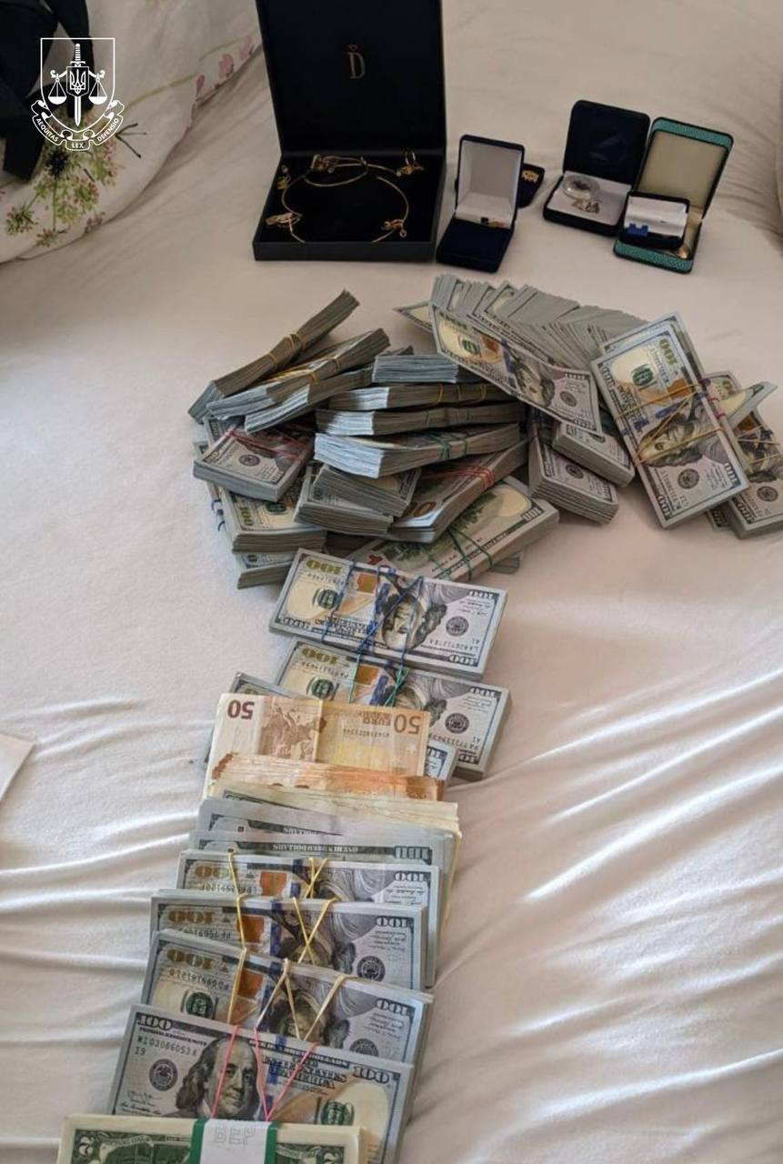 Крім того, вдома у посадовців вилучено 5 млн 244 тис доларів США, 300 тис євро, понад 5 млн грн, брендові прикраси та коштовності. Також вилучено документи, які вказують на незаконну діяльність посадовців та відмивання ними грошей через різні бізнес-проєкти. За результатами санкціонованих обшуків у них знайшли лише готівкою майже 6 мільйонів доларів США.