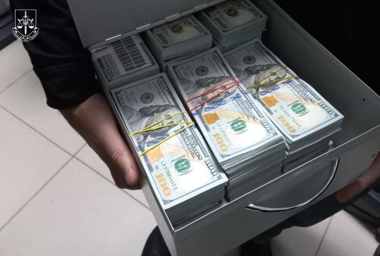 Під час проведення слідчих дій посадовиця намагалась позбутися частини грошей, викинувши дві сумки з пів мільйона доларів США через вікно.