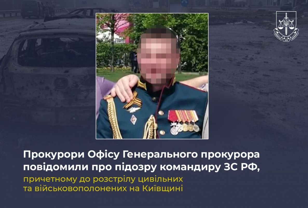 Прокурори Офісу Генерального прокурора повідомили про підозру командиру зс рф, причетному до розстрілу цивільних та військовополонених на Київщині