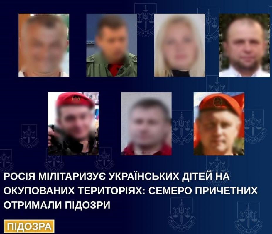 Ювенальні прокурори Офісу Генерального прокурора повідомили про підозру семи громадянам України у вчиненні кримінальних правопорушень, пов’язаних із залученням неповнолітніх до діяльності військово-патріотичного руху, контрольованого збройними силами рф, на тимчасово окупованих територіях України.
