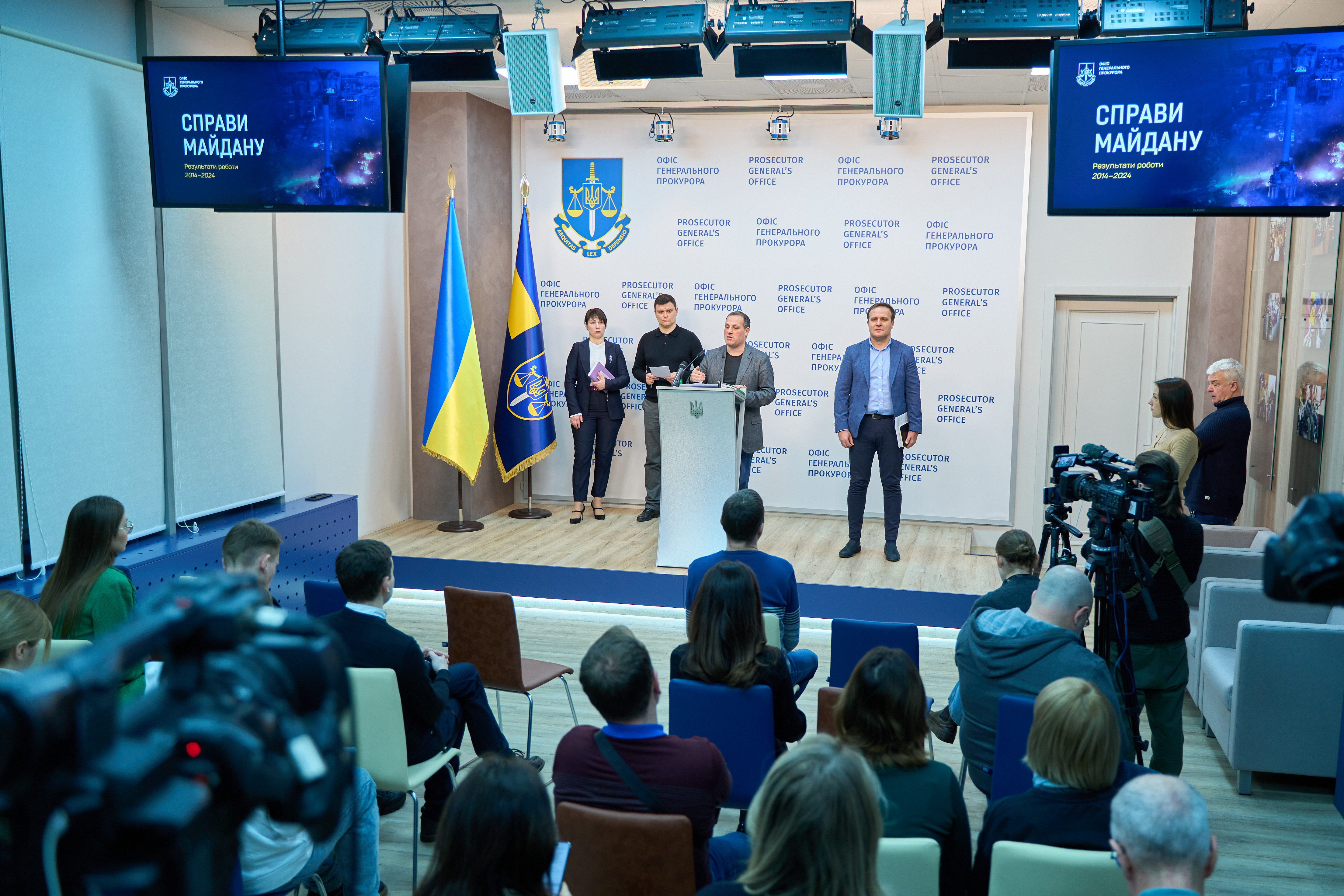 Керівник Департаменту у справах Майдану Офісу Генерального прокурора Олексій Донський, його заступник Денис Іванов, а також начальники відділів Ігор Земсков та Людмила Гавриш провели брифінг щодо результатів розслідування та судового розгляду справ Майдану.