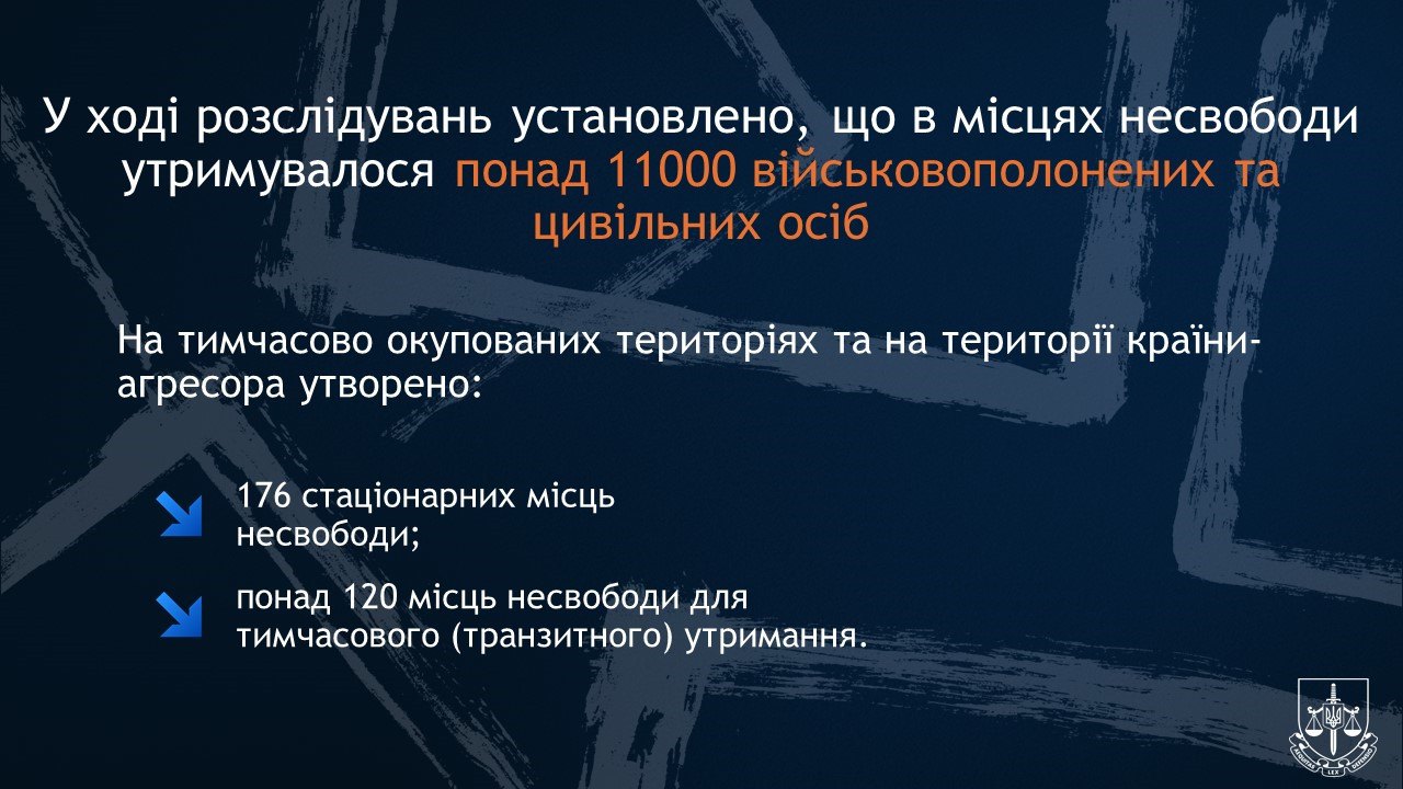 Prosecutors carry out procedural supervision in a number of criminal proceedings on the facts of ill-treatment of prisoners of war and civilians (parts 1, 2 of Art 438 of the Criminal Code of Ukraine).