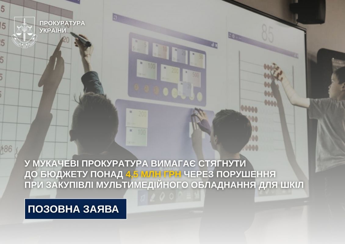Мукачівська окружна прокуратура вимагає визнати недійсними додаткові угоди до договору про закупівлю обладнання для шкіл та стягнути з відповідача понад 4,5 млн грн штрафних санкцій до бюджету.