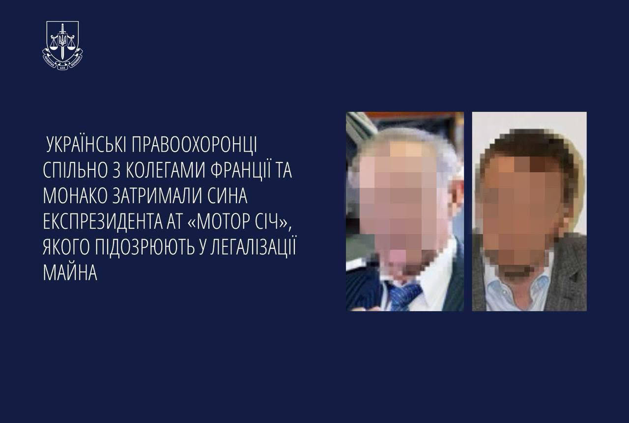 Українські правоохоронці спільно з колегами Франції та Монако затримали сина експрезидента АТ «Мотор Січ», якого підозрюють у легалізації майна