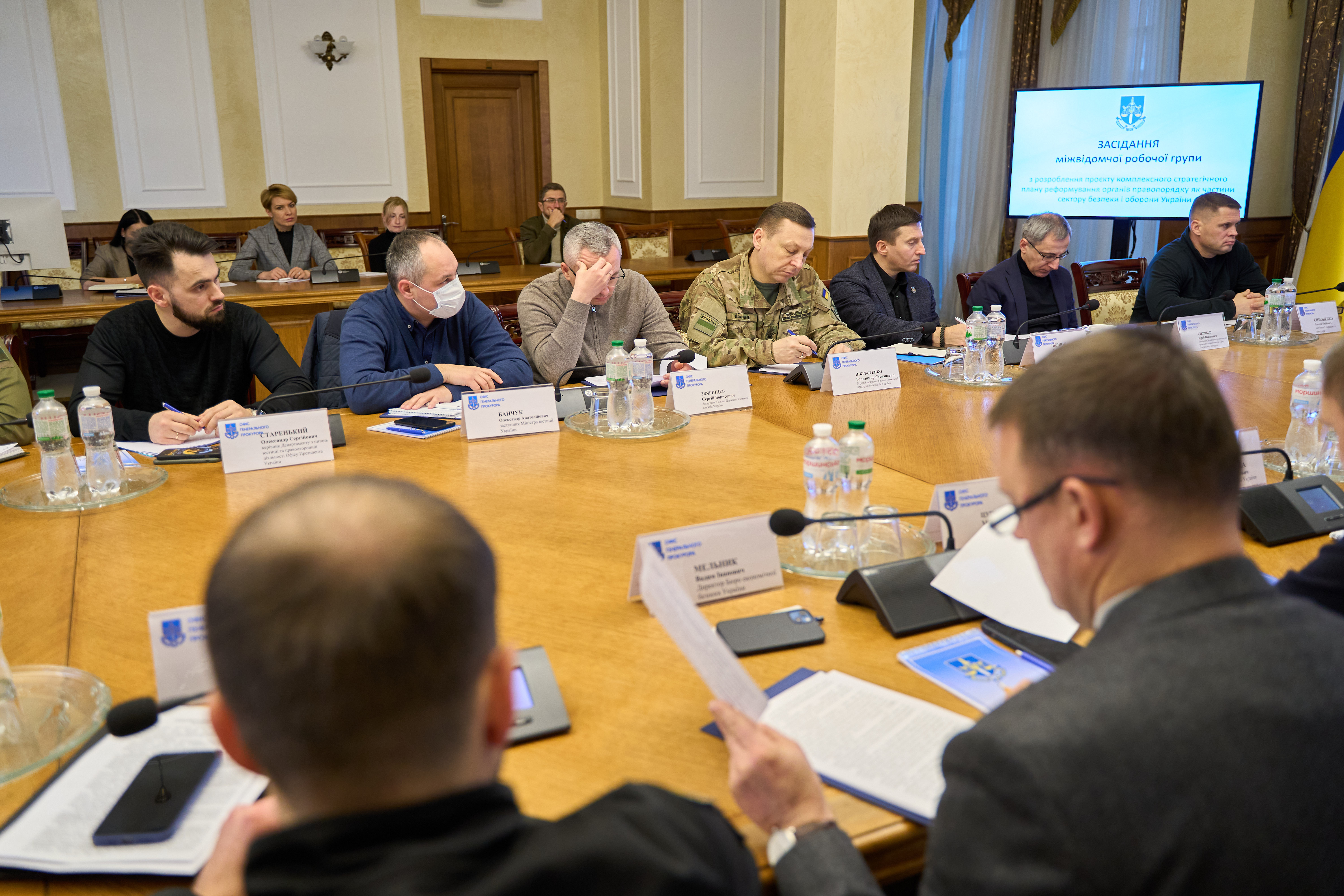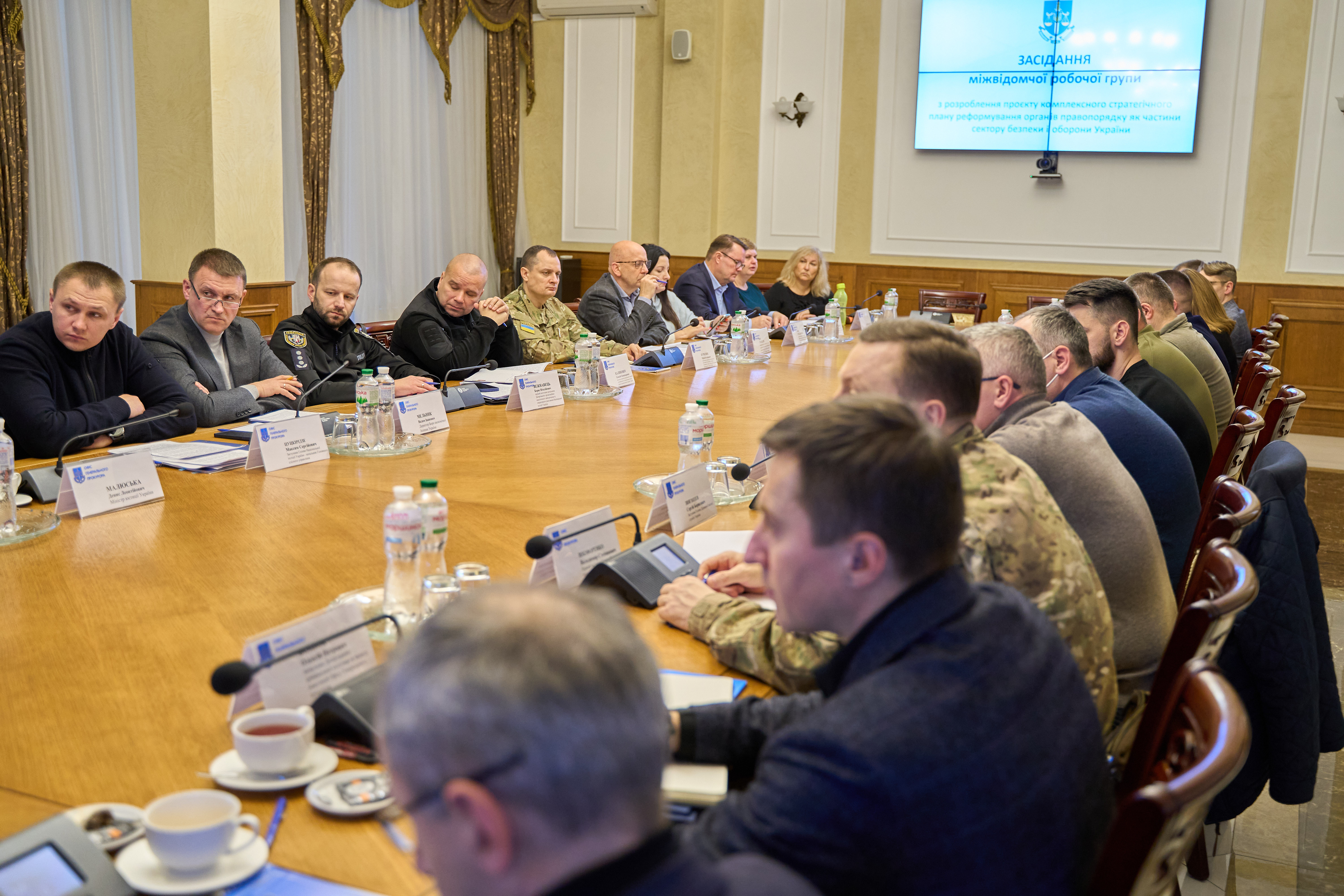 Учасники міжвідомчої групи – очільники Офісу Генпрокурора, МВС, Міністерства юстиції, ДБР, СБУ, Національної поліції, БЕБ, Державної прикордонної служби, Державної митної служби, а також представники Офісу Президента України, Кабінету Міністрів України, міжнародні експерти від КМЄС, проєкту ЄС «PRAVO-JUSTICE», Офісу Ради Європи в Україні, Міжнародної організації права розвитку (IDLO) під час засідання обговорили бачення цілей реформи органів правопорядку, зміст проєкту стратегічного плану їх реформування та строки підготовки.