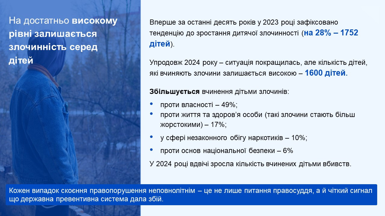 За ініціативи Офісу Генпрокурора вперше в Україні було розроблено та проведено унікальне комплексне дослідження «Кримінологічна характеристика та запобігання кримінальним правопорушенням, вчиненим неповнолітніми».