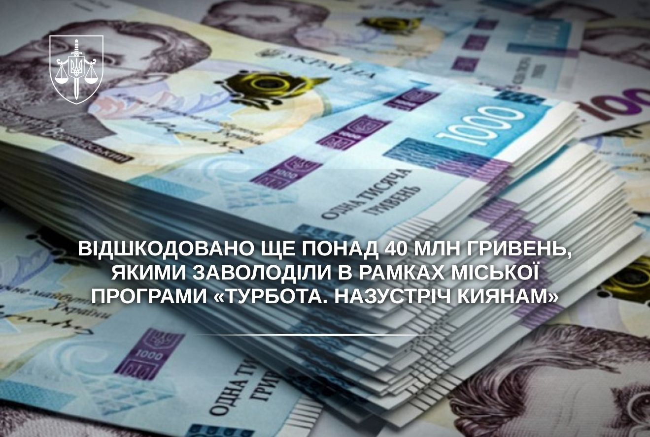 Завдяки послідовній роботі прокуратури та СБУ до бюджету столиці відшкодовано ще понад 40 млн гривень, незаконно привласнених у межах міської програми соціальної підтримки «Турбота. Назустріч киянам».