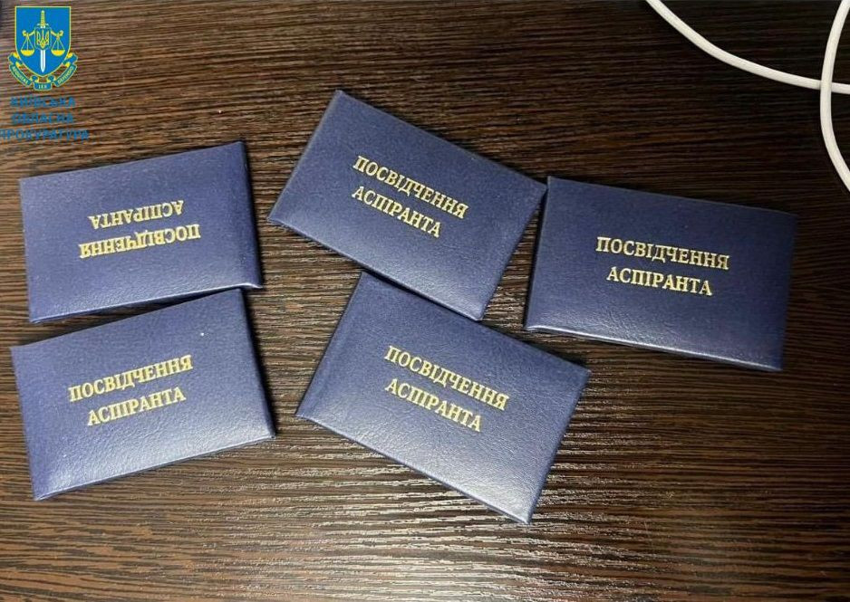 Під час проведення обшуків у них вилучили посвідчення аспірантів, списки військовозобов’язаних, а також записи про суми отриманих коштів.