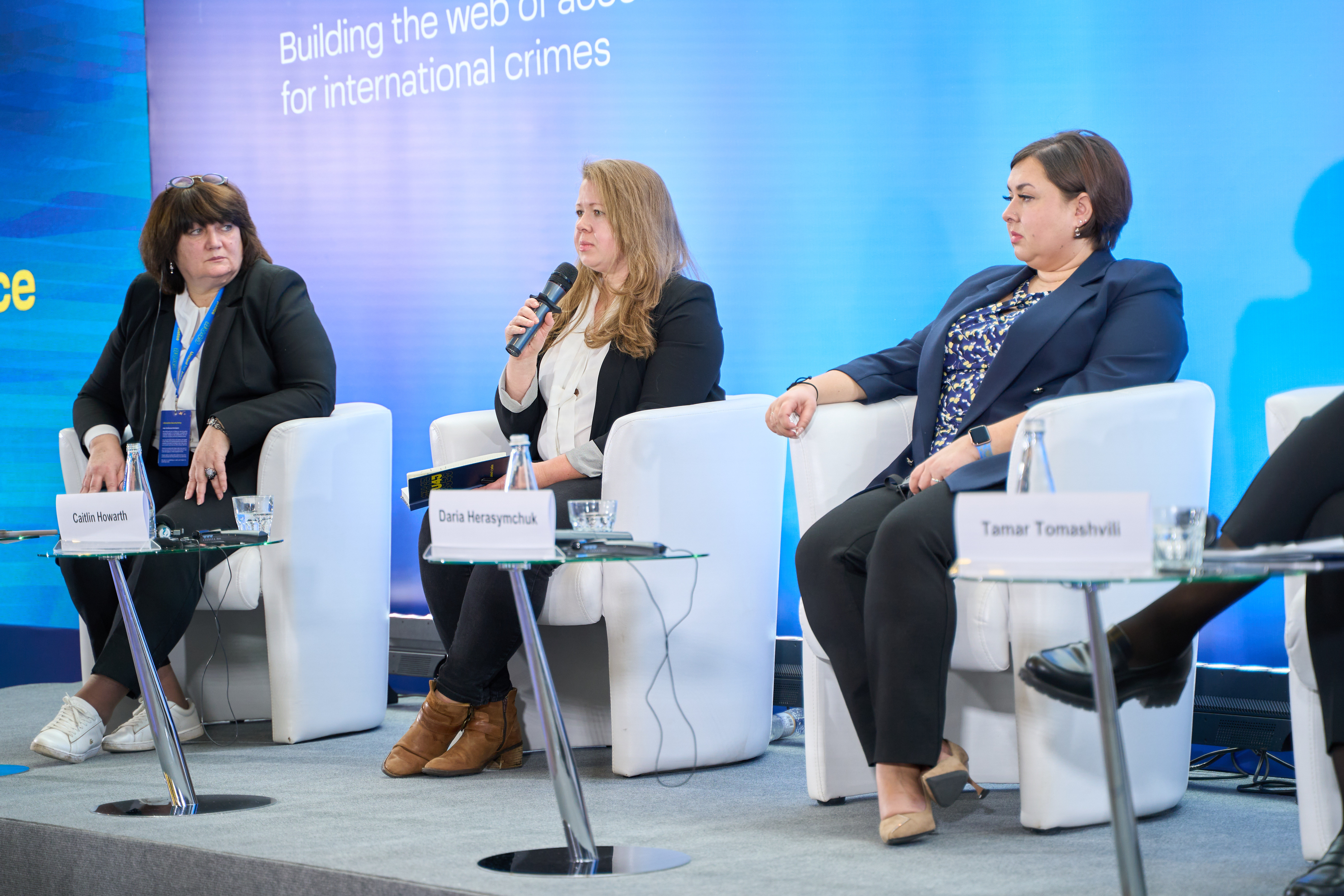 У цій панелі також взяли участь Дар’я Герасимчук, Радниця-уповноважена Президента України з прав дитини та дитячої реабілітації, Caitlin Howarth, Director of Operations for the Conflict Observatory at Yale Humanitarian Research Lab, Tamar Tomashvili, IHL Expert IDLO/Associate Professor of Law, Free University of Tbilisi, Валентина Потапова, голова ГО ЦГП «Альменда». Модерувала панель Марія Єфросиніна, активістка, засновниця ГО «Фонд Маша».