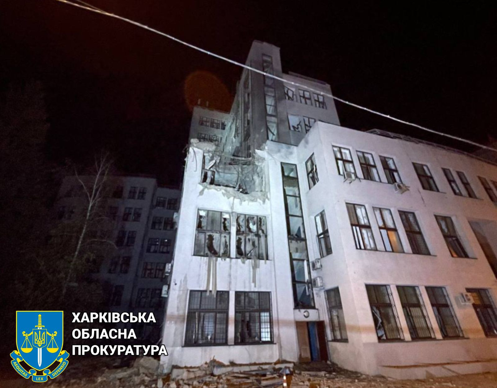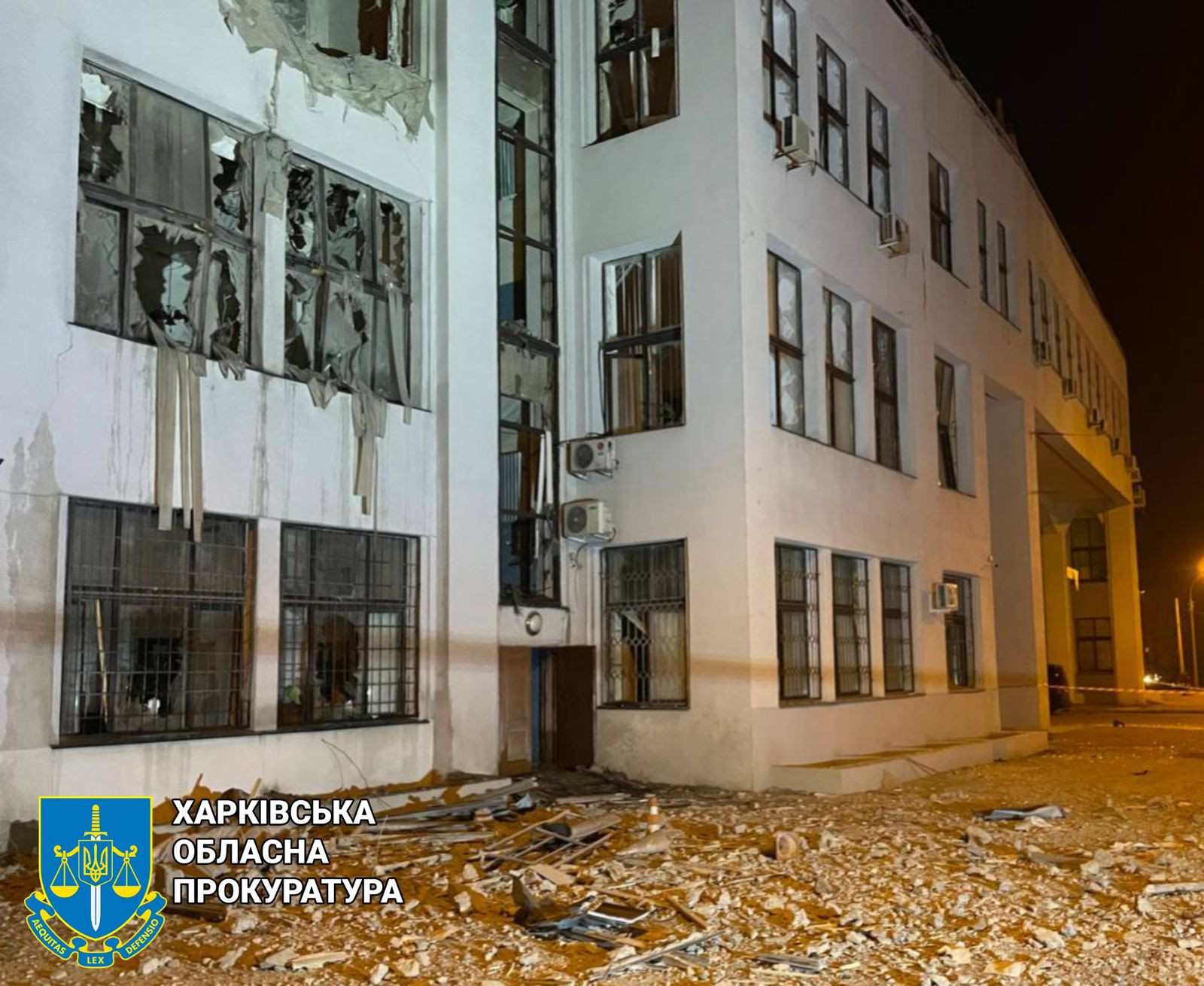 Авіаційний боєприпас влучив в один з підʼїздів Держпрому у центрі міста. У будівлі розташована низка офісів офіційних органів та структур. Цей обʼєкт є памʼяткою архітектури й містобудування національного значення та перебуває під тимчасовим посиленим захистом ЮНЕСКО.