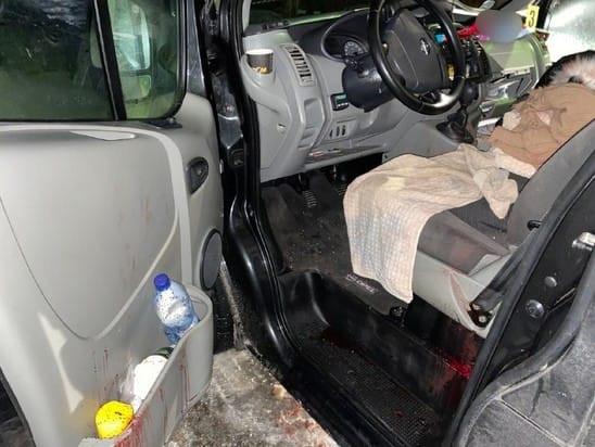 Далі засуджений підійшов до автомобіля підприємців, де знаходилася дружина потерпілого. Він відкрив передні пасажирські двері та завдав їй 7 колото-різаних ран.