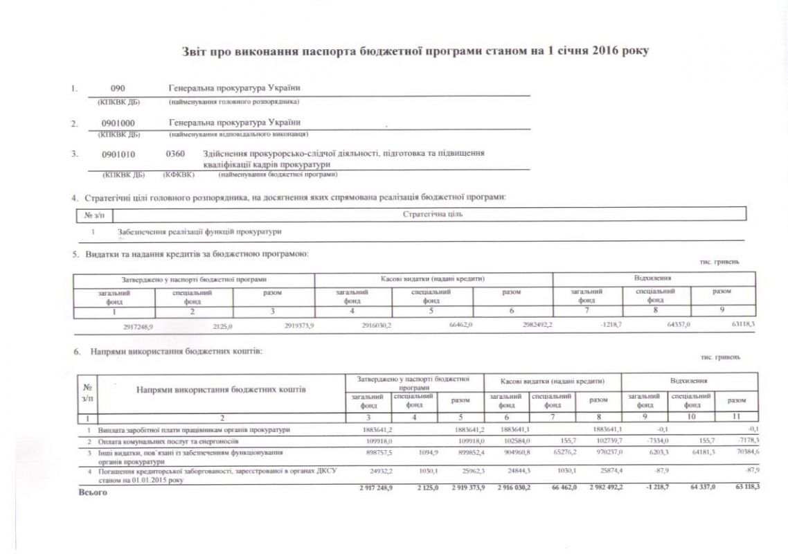 Звіт про виконання паспорта бюджетної програми по КПКВК 0901010 станом 01 січня 2016 року